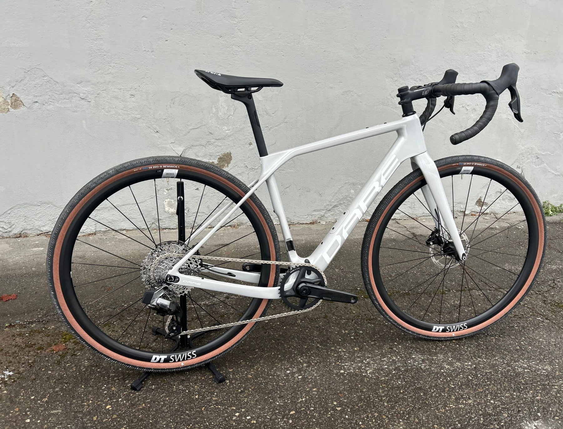 Siste sykkel i S i denne fargen. Topp karbon ramme, gaffel og setepinne, solide hjul fra DT Swiss og en god ergonomisk sadel fra Fizik. Topp kvalitet til en meget god pris. Ergo karbonstyre fra DARE i 38cm bredde. Alu stem i 90mm lengde.