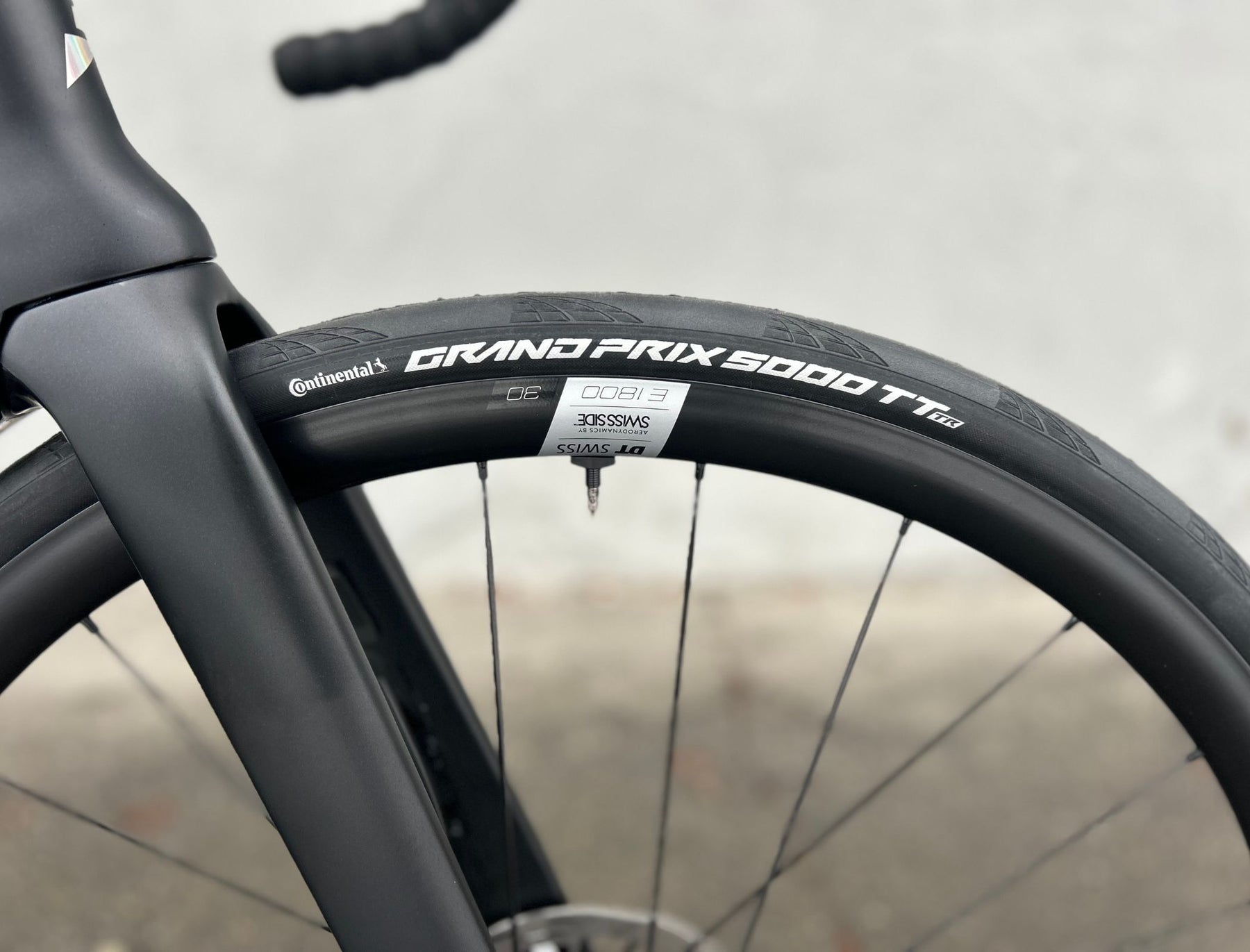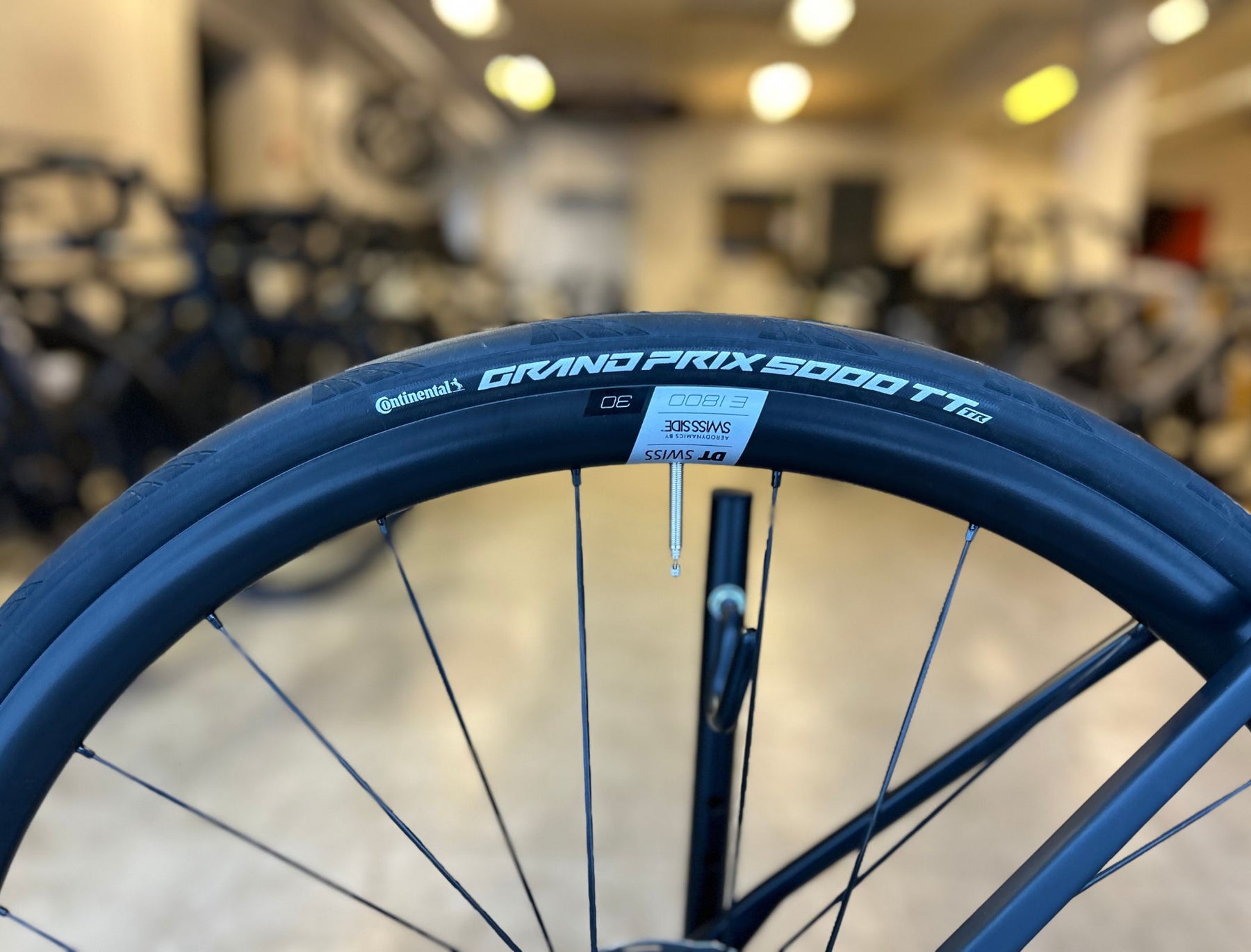Continental GP5000 TT dekk satt opp med slange. Mulig å sette opp slangeløst.
