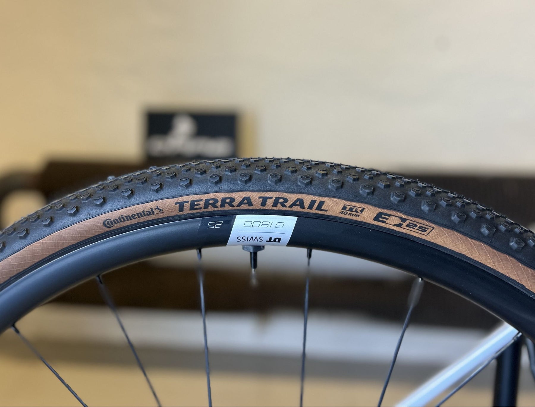 Solide hjul i gravelserien fra DT Swiss, G1800. Dekk fra Continental som kan settes opp slangeløst om ønskelig.